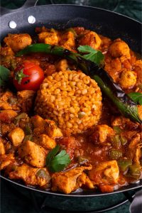 Osmancik rice, onion , garlic, tomato paste, pepper paste, lemon, sumac, dried mint and olive oil, parsley, pomegranate syrup) /2E