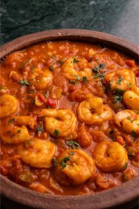 (Creveti, ulei de masline, usturoi, sos de citrice, coriandru, mustar, castravete, ceapa, ardei iute)