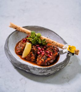 (Tomato, cucumber, green pepper, green onion, fresh mint, parsley, cherry and bostana sauce – cherry juice, olive oil, lemon juice, pomegranate sauce, dried mint, sumac and black peper) / 8/2E