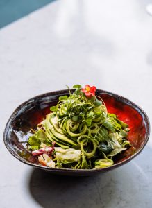 (Arugula, iceberg, romaine green salad, dill, parsley, fresh mint, spinach, mix greens, chives, lolo rossa, california peppers, green apple & avocado, lemon juice, orange, light soy sauce, olive oil) / 6/1E