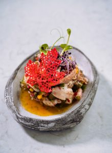 (Shrimps, olive oil, garlic, citrus dressing, coriander, mustard, cucumber, onion, chilli pepper) / 10,14/2E
