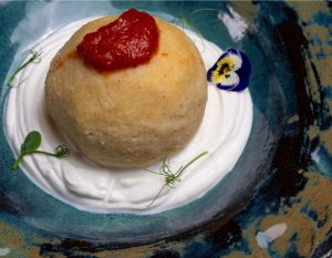 Chiflete de grau cu carne tocata in sos de iaurt / Mince meat stuffed wheat meatballs in yoghurt sauce (240 gr)